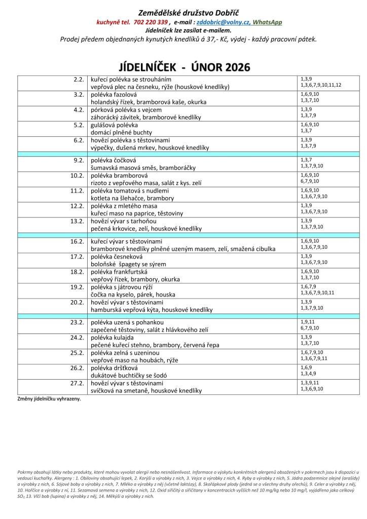 Jídelníček únor 2026