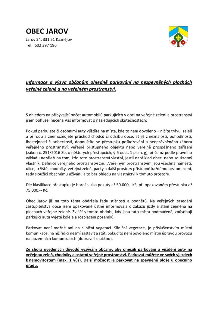 Informace a výzva občanům ohledně parkování na nezpevněných plochách veřejné zeleně_k vyvěšení.pdf Typ: PDF dokument, Velikost: 555.75 kB
