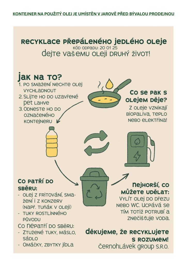 Kontejner na použitý olej je umístěn v Jarově před bývalou prodejnou